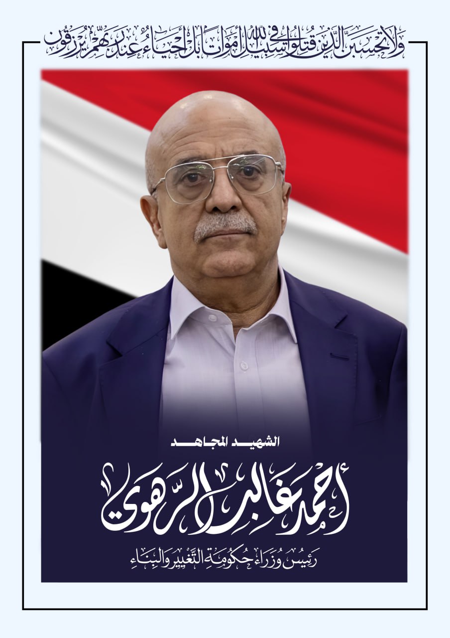 الشهيد المجاهد أحمد غالب ناصر الرهوي رئيس مجلس الوزراء رئيس حكومة التغيير والبناء.