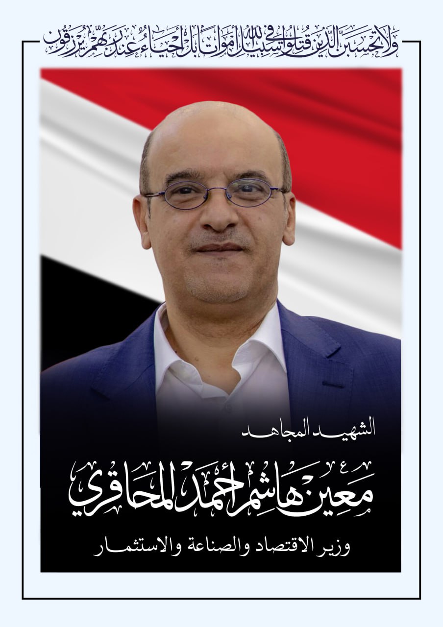 الشهيد المجاهد: معين هاشم أحمد المحاقري ـ وزير الاقتصاد والصناعة والاستثمار.