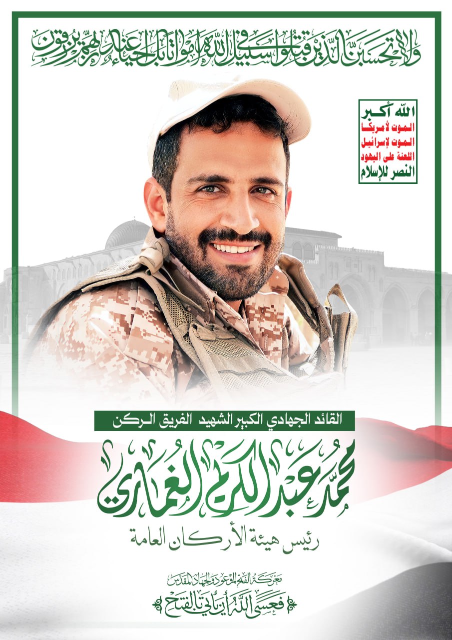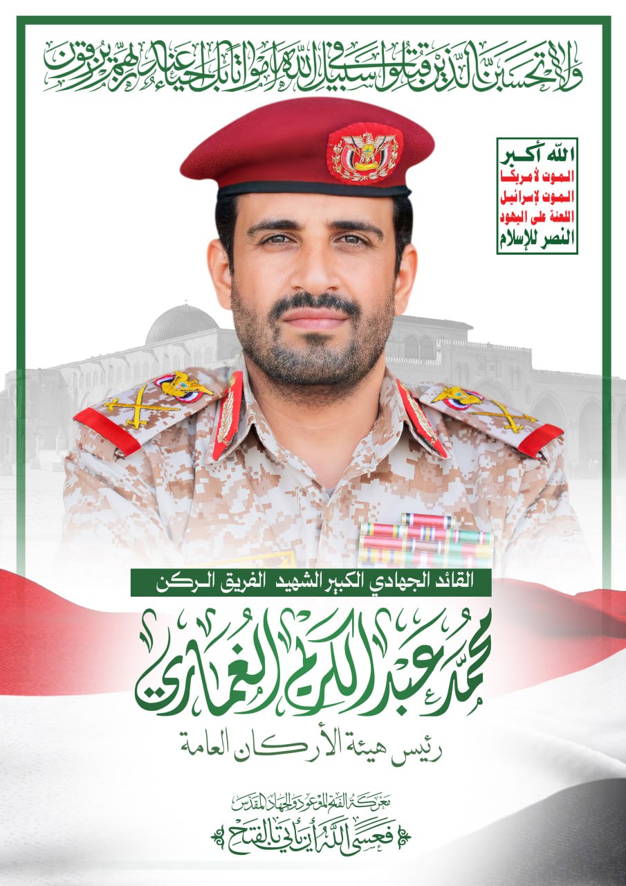 نعت القوات المسلحة القائد الجهادي اللواء الركن محمد عبد الكريم الغماري الذي استشهد مع بعض مرافقيه وولده الشهيد حسين في مختلف الغارات التي شنها العدوان الإجرامي الأمريكي الصهيوني على بلدنا خلال عامين من معركة "طوفان الأقصى".