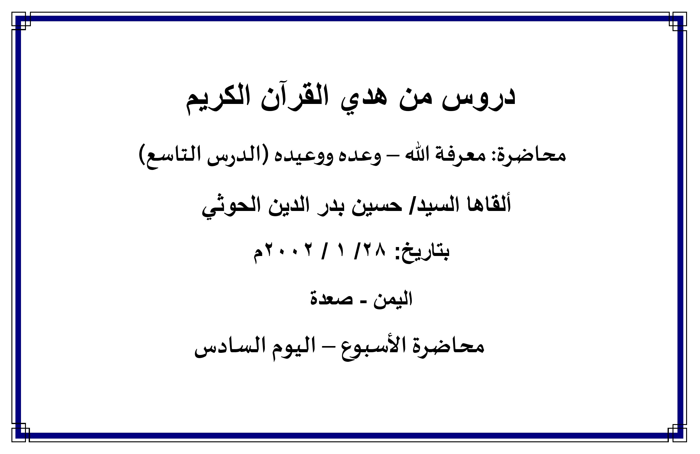 محاضرة: (معرفة الله – وعده ووعيده- الدرس التاسع): من الصفحة ( 7 ) إلى الصفحة ( 9 )