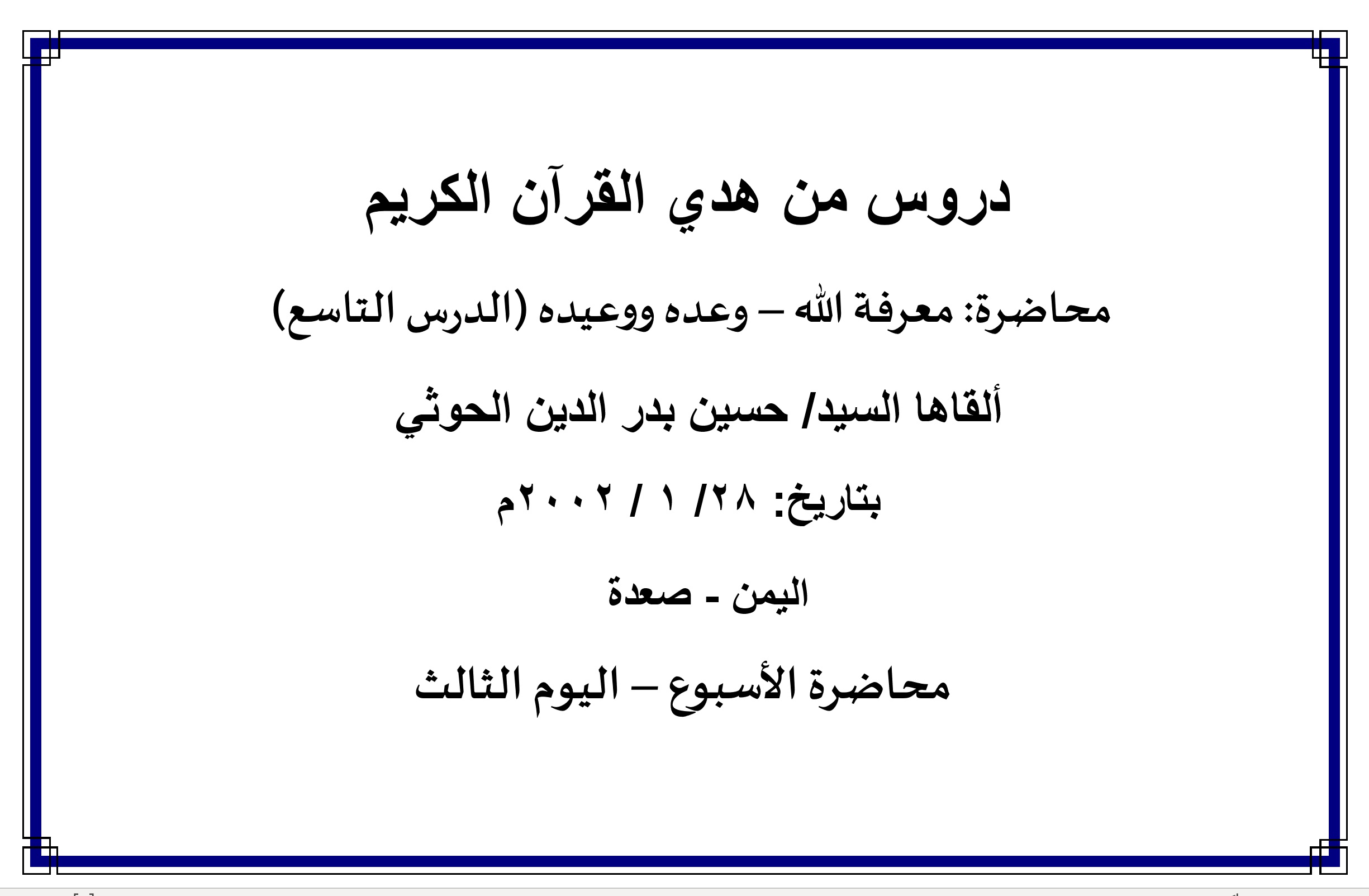 محاضرة: (معرفة الله – وعده ووعيده- الدرس التاسع): من الصفحة ( 4 ) إلى الصفحة ( 5 )