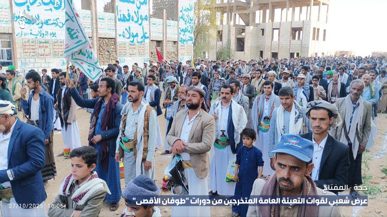 The mobilization forces renewed their allegiance to the Leader of the Revolution, Sayyid Abdul-Malik Badr al-Din al-Houthi, granting him full authority to make decisive choices in defense of land, honor, and national sovereignty, and in support of the ummah’s causes, pledging to follow in the footsteps of the martyrs and safeguard the achievements secured through their blood.