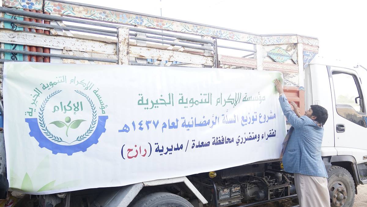 موقع أنصار الله || أخبار محلية || بدأت مؤسسة الإكرام التنموية الخيرية بمحافظة صعدة توزيع السلات الغذائية على الأسر المحتاجة في مديريات محافظة صعدة والتي بلغت 15 ألف سلة غذائية .