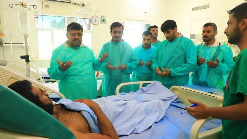 تفقد عضو المجلس السياسي الأعلى محمد علي الحوثي وقائد المنطقة العسكرية الخامسة اللواء يوسف المداني، اليوم الأربعاء، جرحى الجيش واللجان الشعبية في إحدى مستشفيات الحديدة.