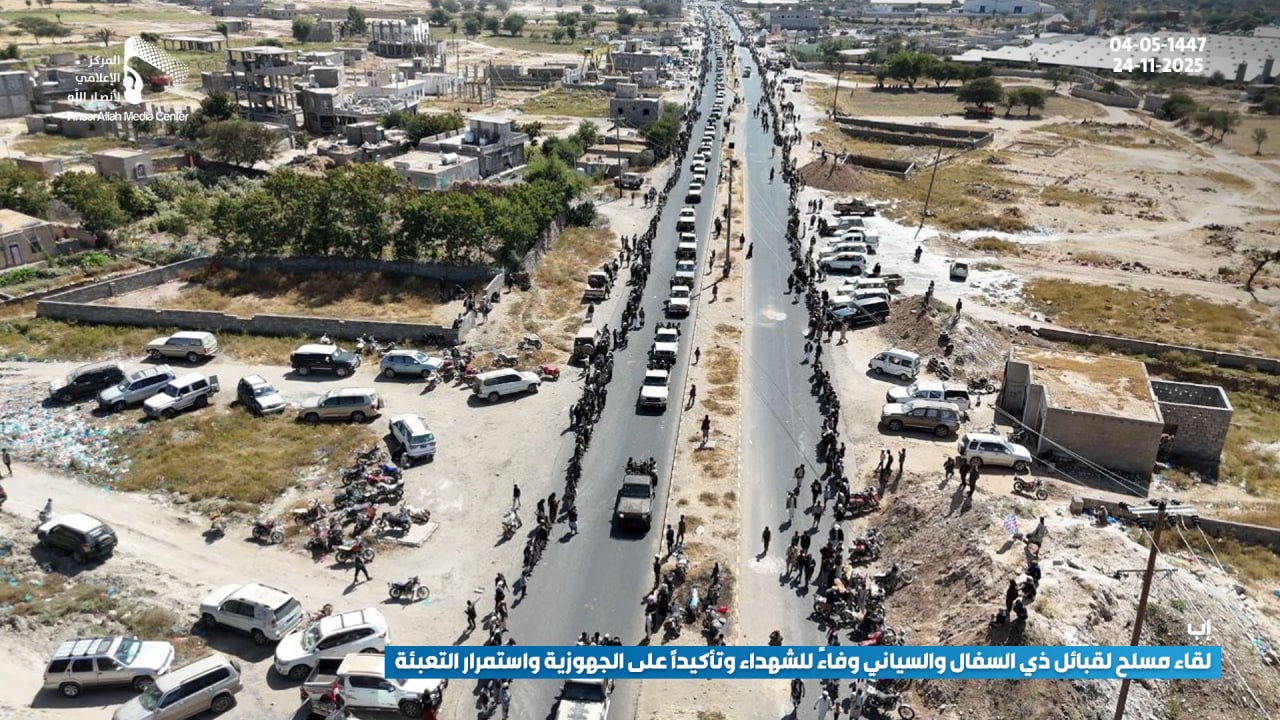 وأشار بيان صادر عن النكف القبلي، إلى استمرار الموقف الثابت في نصرة فلسطين، والجهوزية لتنفيذ توجيهات القيادة الثورية في التصدي لأي عدوان يستهدف اليمن وسيادته.