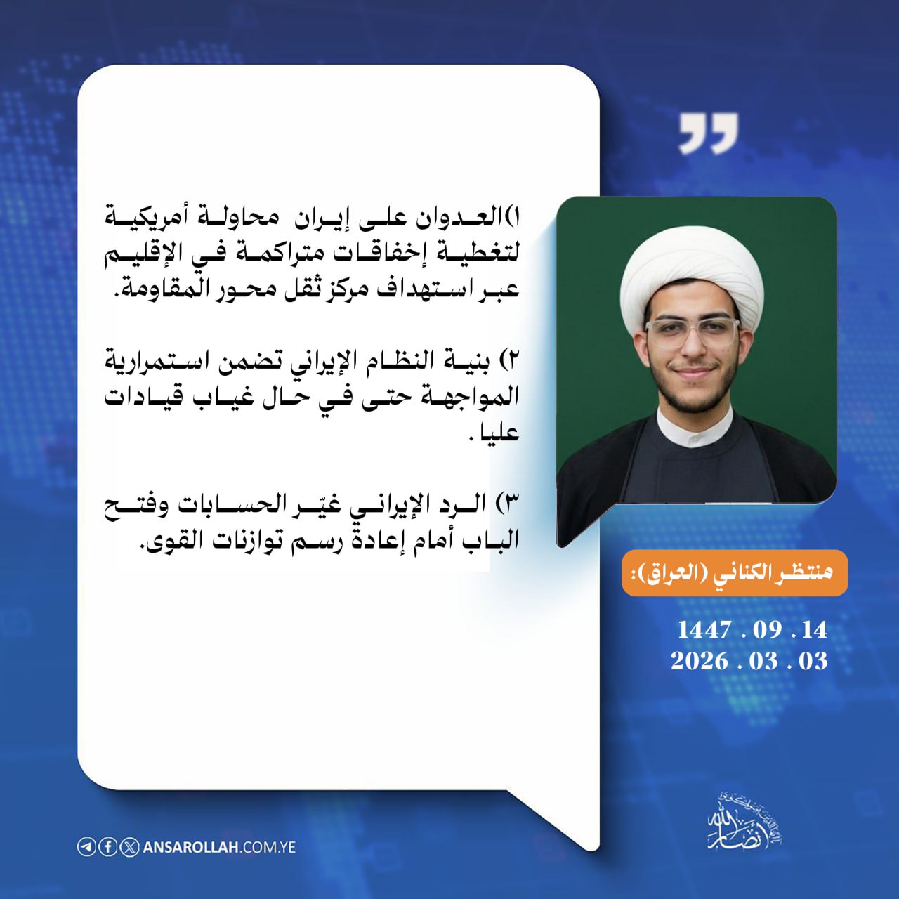 بدوره يؤكد الناشط الإعلامي العراقي منتظر الكناني أن الهجوم يمثل محاولة أمريكية لتغطية إخفاقات متراكمة في الإقليم، عبر استهداف مركز ثقل في محور المقاومة.