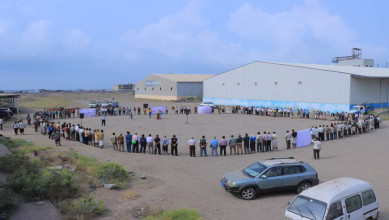 نظم منتسبو مؤسسة موانئ البحر الأحمر اليمنية والقطاعات العاملة بميناء الحديدة، ...