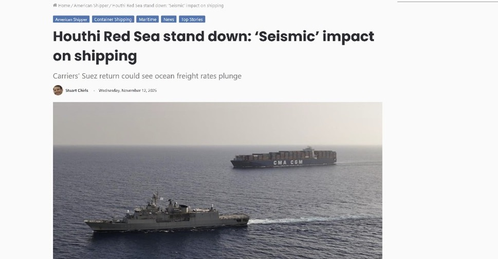 In this context, FreightWaves, a leading global shipping and transport outlet, reported that the Gaza ceasefire achieved what U.S. military operations against Yemen could not. Following the ceasefire, Yemen announced a temporary halt to attacks on Israeli-linked ships and cooperating companies in the Red Sea, raising hopes for the resumption of shipping through the Suez Canal for the first time since 2023.