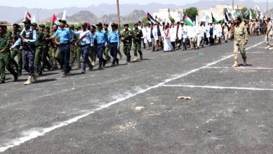 عرض عسكري لخريجي دورات التعبئة في مقبنة بتعز